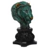 Handmade Lion Head Statue Stone Finish Animal Figurines Gifts Antique Design for Home Decoration (green)